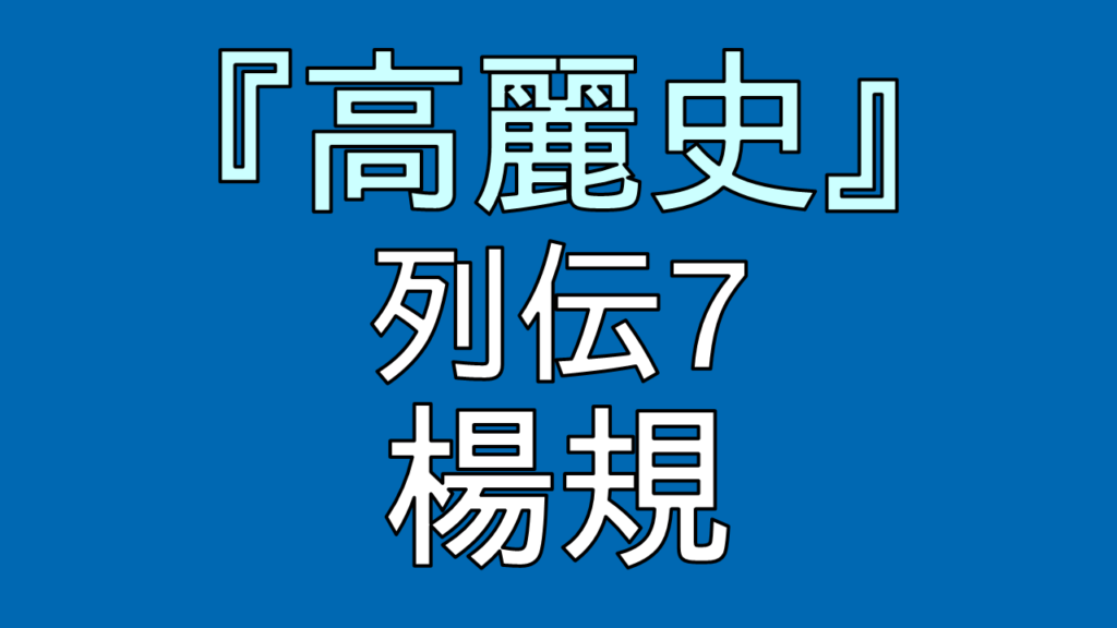 『高麗史』巻94、列伝7、楊規(ヤンギュ)