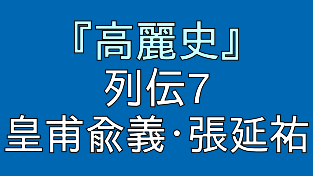 『高麗史』巻94、列伝7、皇甫兪義・張延祐(ファンボユイ・チャンヨンウ)
